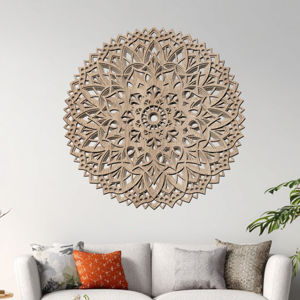 Tip: Pro ještě silnější efekt zkombinujte mandalu s přírodními textiliemi a teplým osvětlením – plastické vrstvy pak krásně vyniknou i večer.