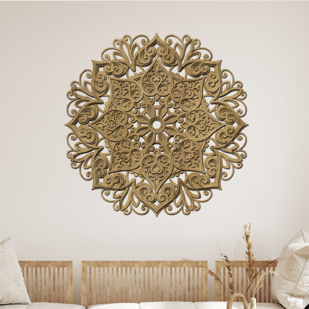 Dřevěná 4 vrstvá mandala Srdcem k úsměvu je fascinující umělecký kousek, který v sobě spojuje tradiční řemeslné zpracování a moderní design. Tento unikátní dekorativní prvek je laserm vyřezáván z kvalitního dřeva, což zaručuje jeho dlouhou životnost a autentický vzhled. Čtyři vrstvy dřeva vytvářejí působivý 3D efekt, který zaujme každého, kdo se na mandalu podívá. Motiv Srdcem k úsměvu symbolizuje radost, lásku a propojení mezi lidmi, což přináší do vašeho domova pozitivní energii a harmonii.