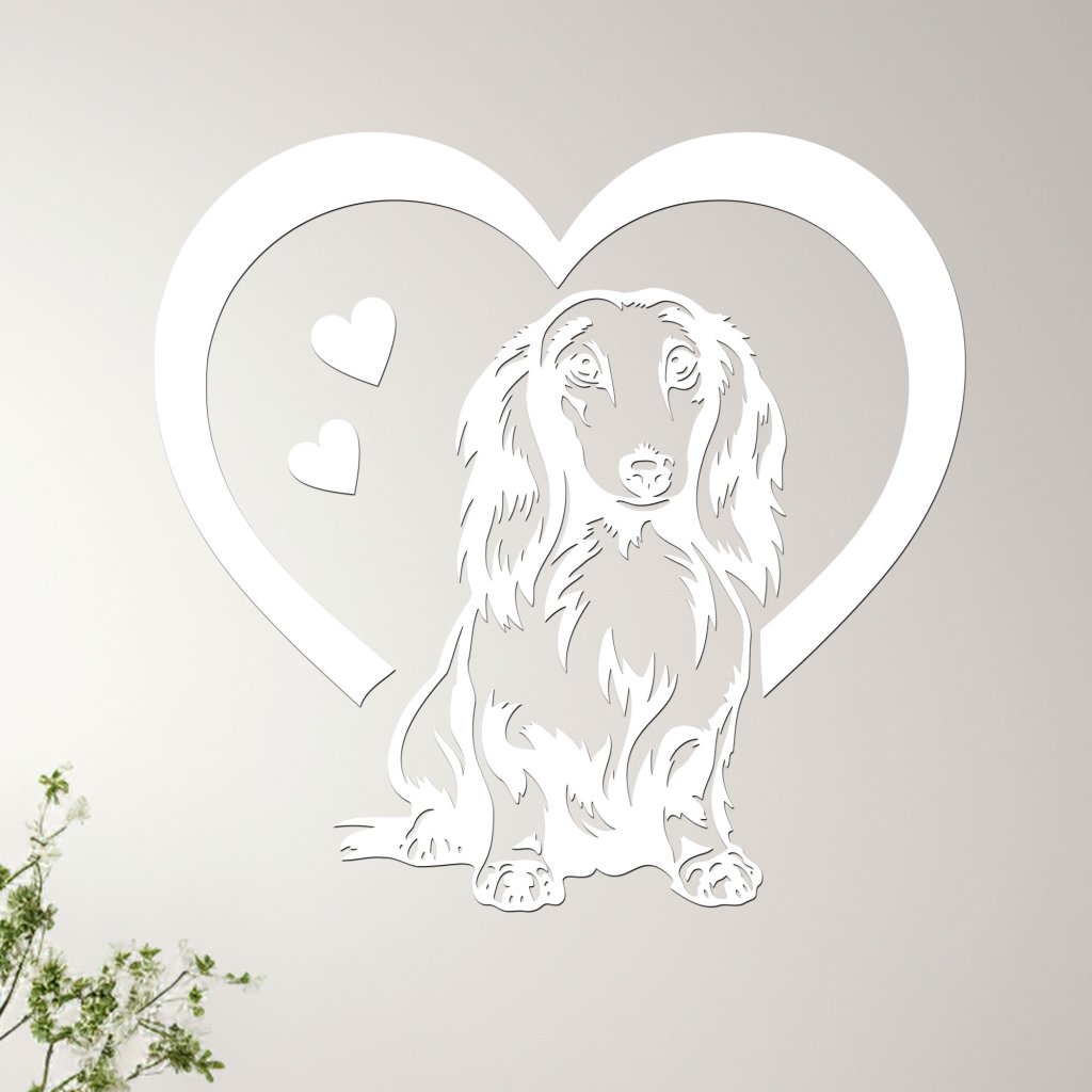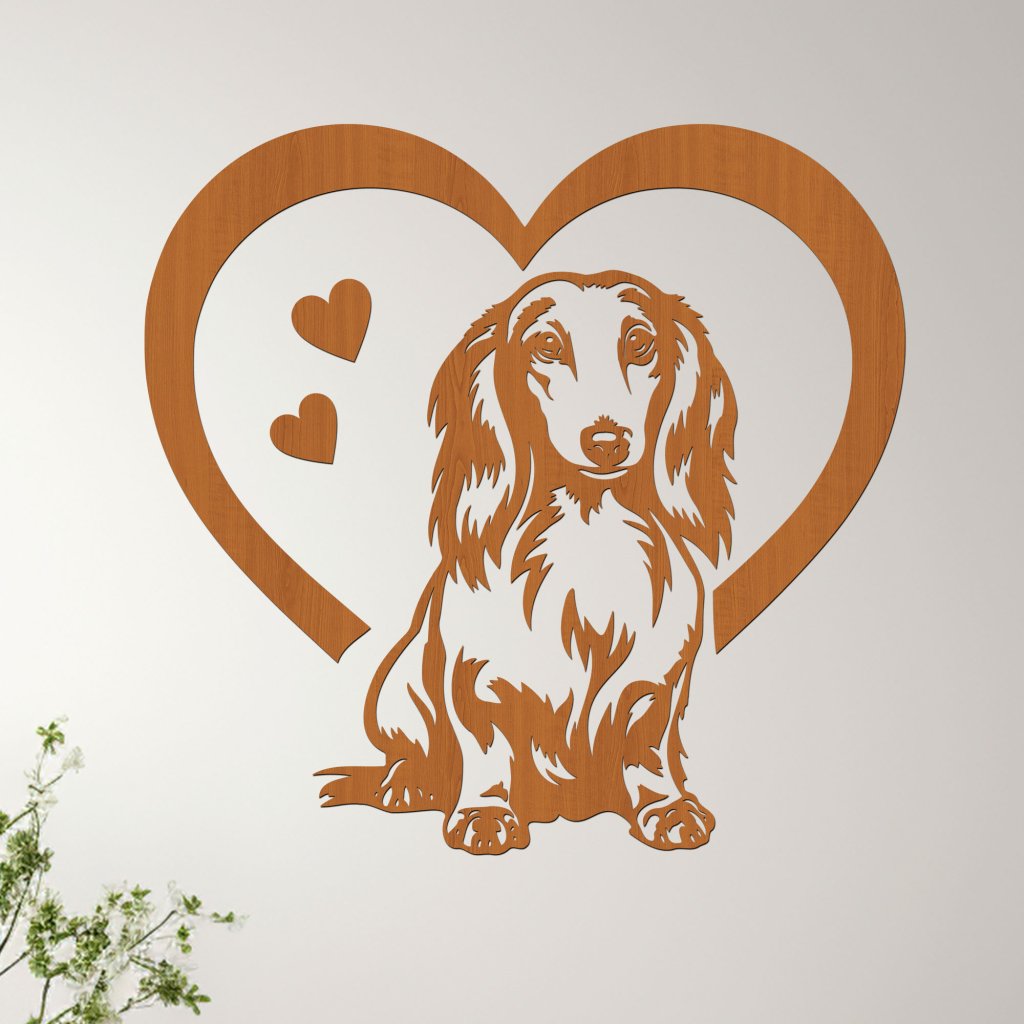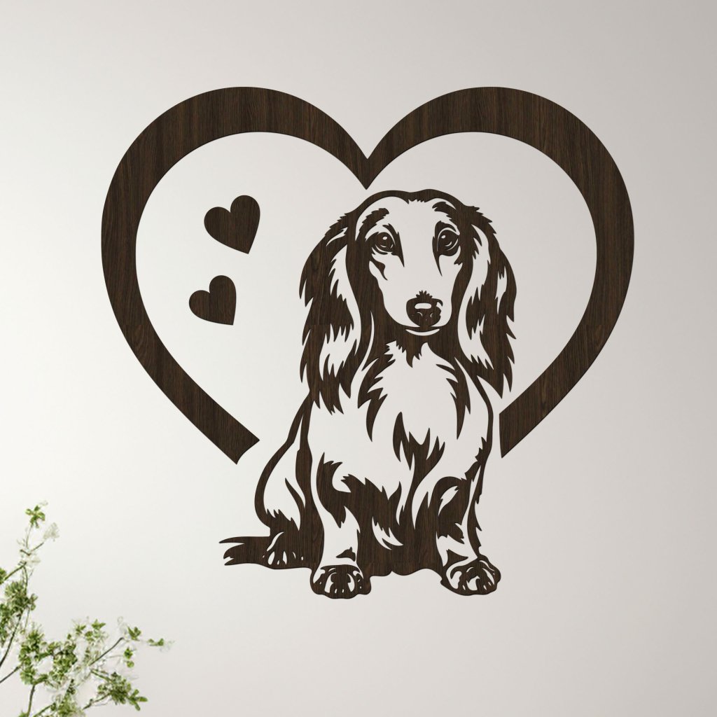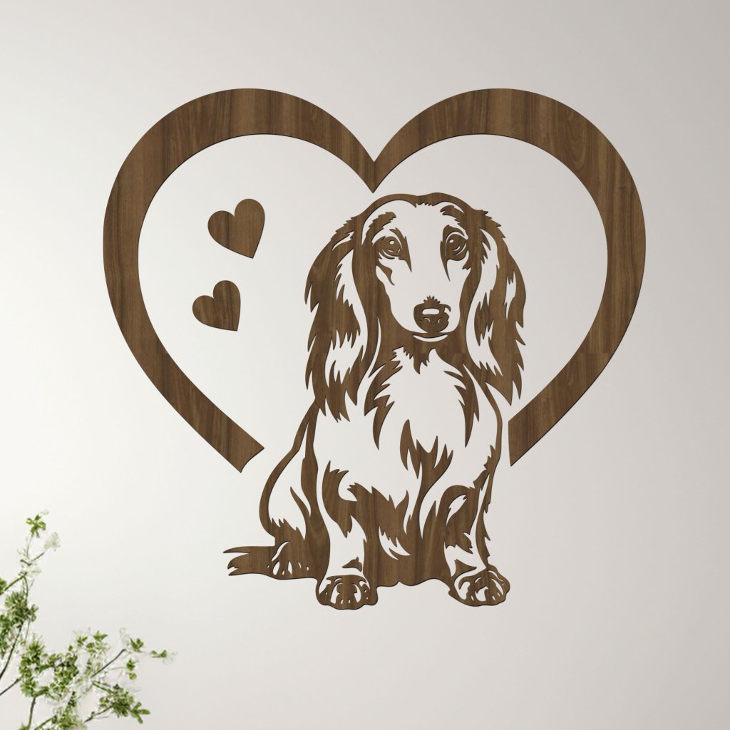 Tento nádherný dřevěný obraz zachycuje lásku a oddanost dlouhosrstého jezevčíka – malého, ale odvážného a věrného společníka. Motiv jezevčíka, vklíněný do tvaru srdce, symbolizuje neochvějnou lásku a vřelý vztah, který máme se svými čtyřnohými přáteli. Obraz je pečlivě vyřezán z kvalitního HDF materiálu a stane se stylovým doplňkem vašeho domova. Je ideální volbou pro milovníky této plemene, kteří chtějí mít kousek svého mazlíčka stále na očích.