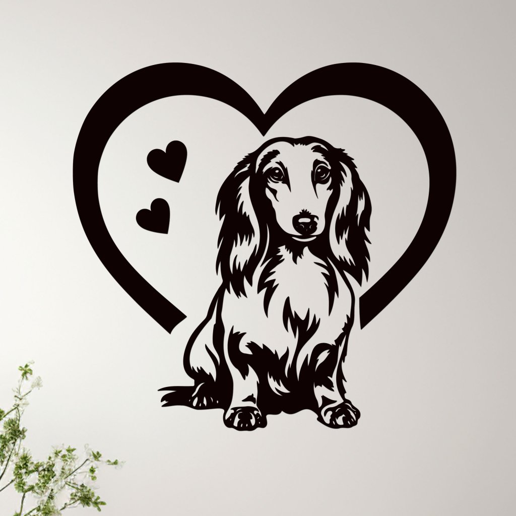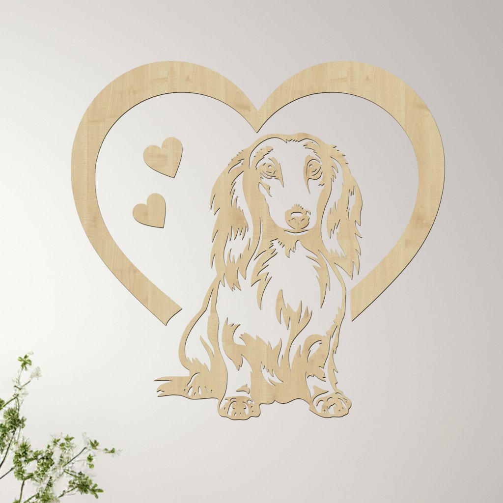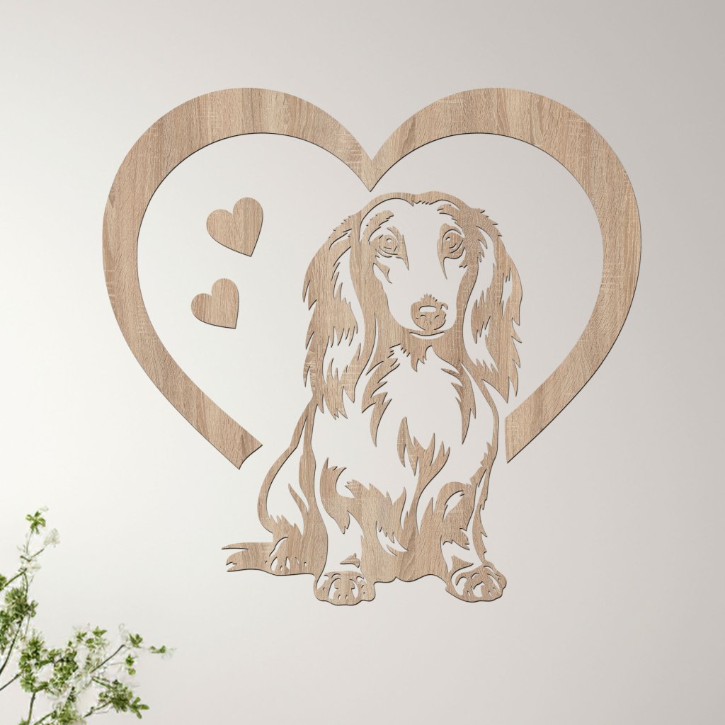 Dřevěný obraz Dlouhosrstého jezevčíka v srdci