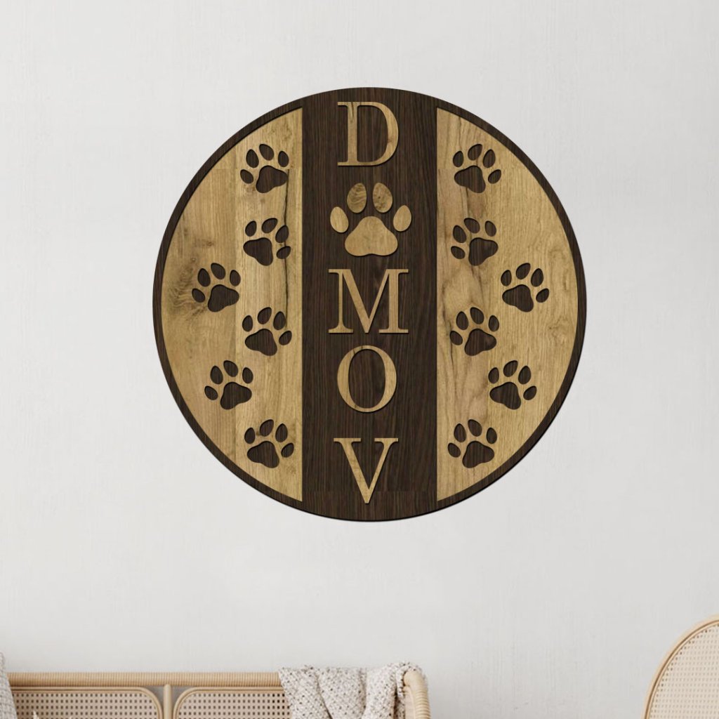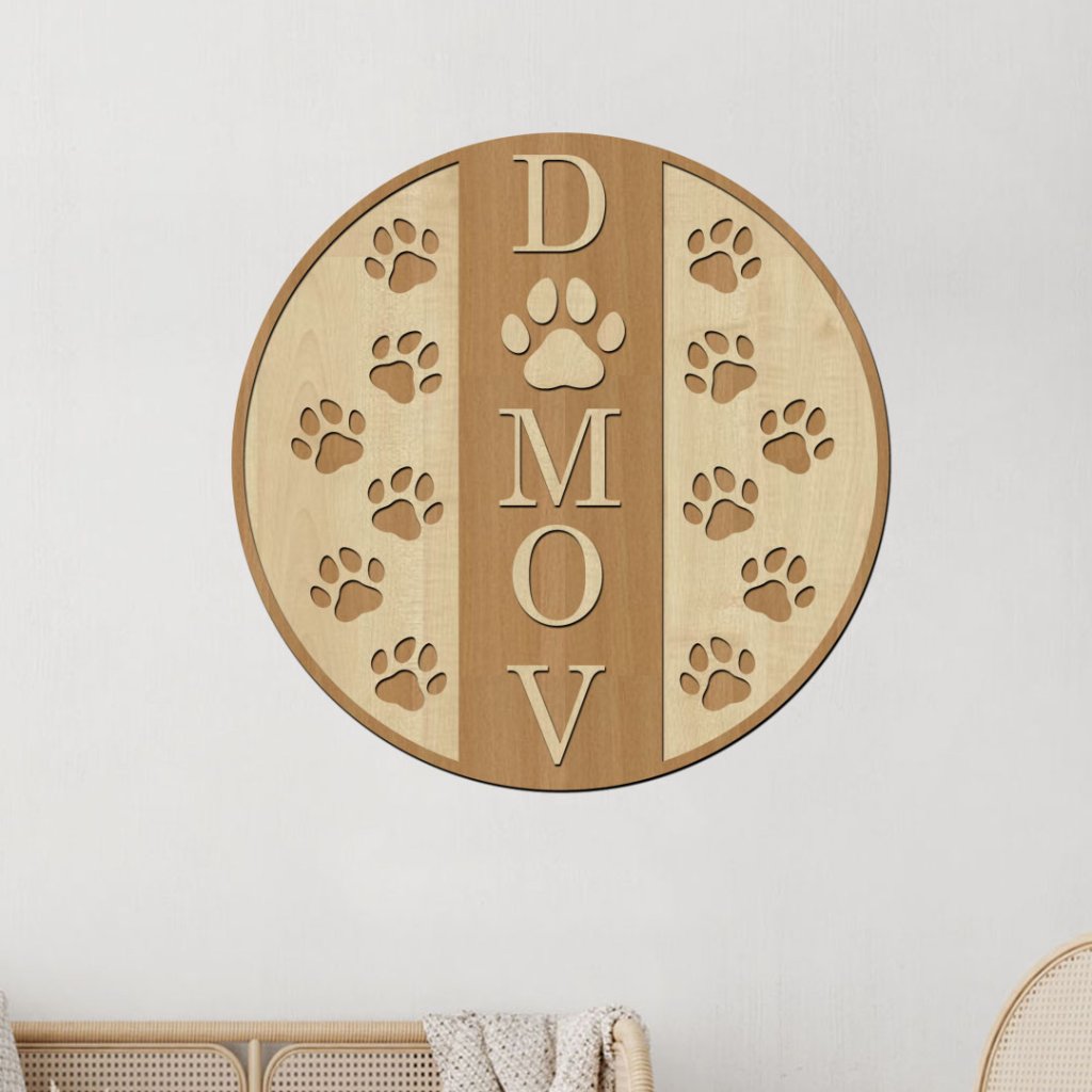 Slovo, které zahřeje u srdce – DOMOV – jsme obohatili o něžný detail. Místo jednoho písmene „O“ se v cedulce vyjímá psí tlapička s vyplněnými polštářky, která symbolizuje věrnost, radost a lásku čtyřnohých přátel.