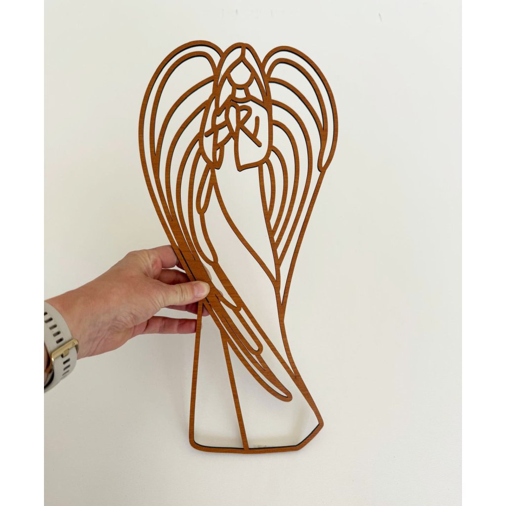 Přineste do svého domova kousek nebeské harmonie s touto ručně vyráběnou dřevěnou dekorací Anděla. Jemné linie a přírodní materiál dodají vašemu prostoru klidnou a hřejivou atmosféru, zatímco symbolika anděla přinese pocit bezpečí a ochrany.