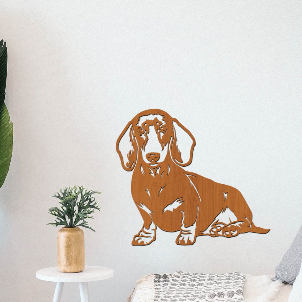 Kvalitně vyrobená dřevěná dekorace na zeď psa Jezevčíka jako neotřelý dárek pro milovníky přírody a pejsků. Jezevčík je vynikající společník a vyznačuje se vynalézavostí, inteligencí a sebevědomím. Dřevěnou dekoraci vyrábíme z 3 mm dřevovláknité desky o vysokého hustotě, která tak vytváří z obrazu 3D efekt.