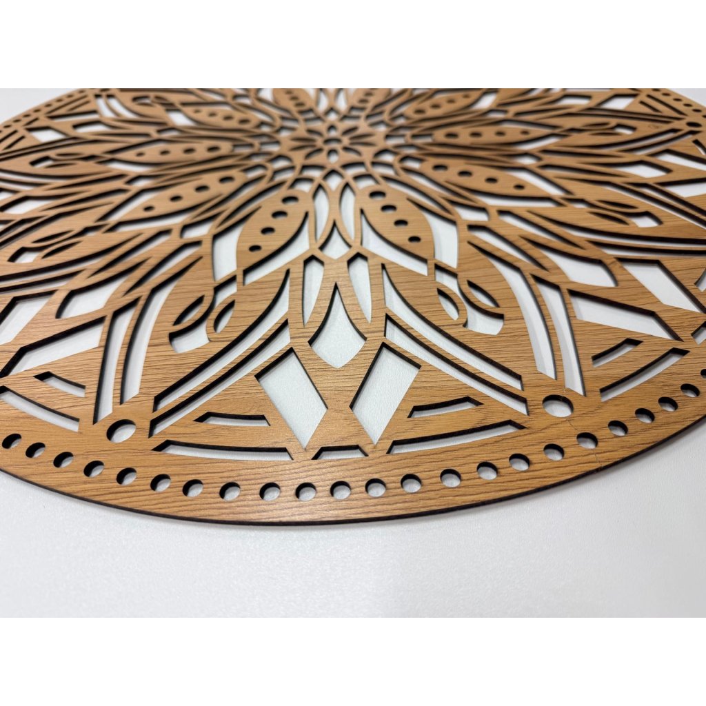 Dřevěná mandala Vědomí je symbolem vnitřního klidu, uvědomění a návratu k sobě. Jemné linie a harmonický tvar mandaly vytváří pocit rovnováhy a tichého zastavení v prostoru, kde je umístěna. Připomíná, že skutečná síla a jasnost vychází zevnitř.
