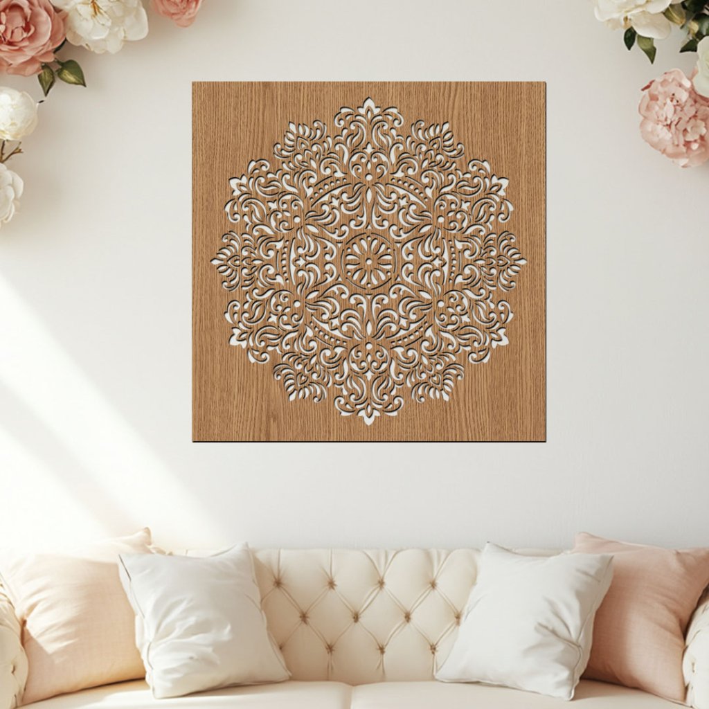 Objevte kouzlo dřevěné mandaly VNITŘNÍHO KLIDU, která přináší do vašeho domova harmonii, rovnováhu a pocit hlubokého uvolnění. Mandala je symbolem jednoty a duchovního klidu – jemné linie a precizní laserový výřez vytváří originální dekoraci, která ozdobí každý interiér a zároveň působí jako energetický prvek podporující meditaci, relaxaci i soustředění.
