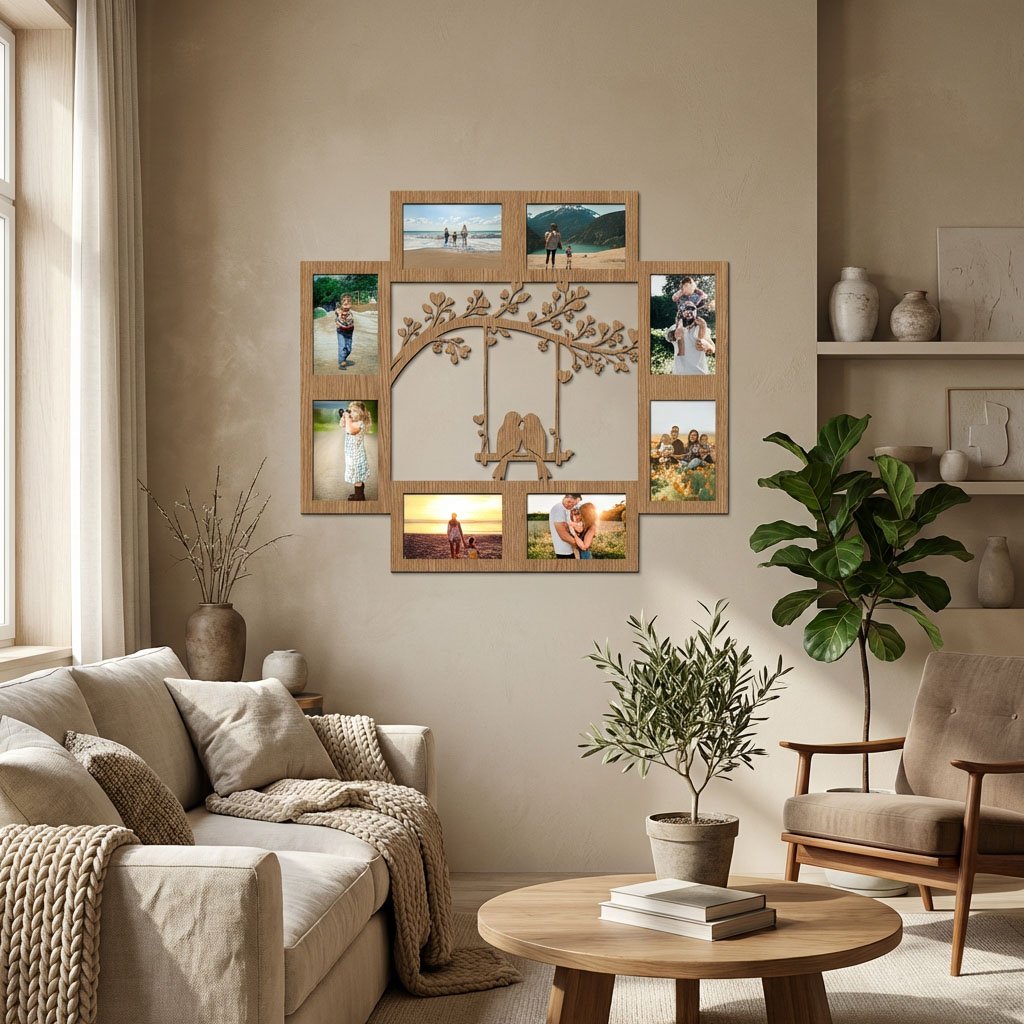 📸 Praktické zasouvání fotografií – fotky můžete jednoduše měnit bez sundávání ze zdi.