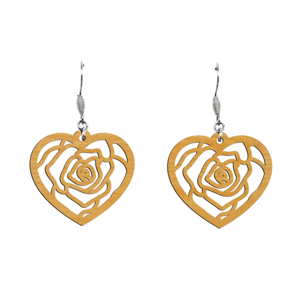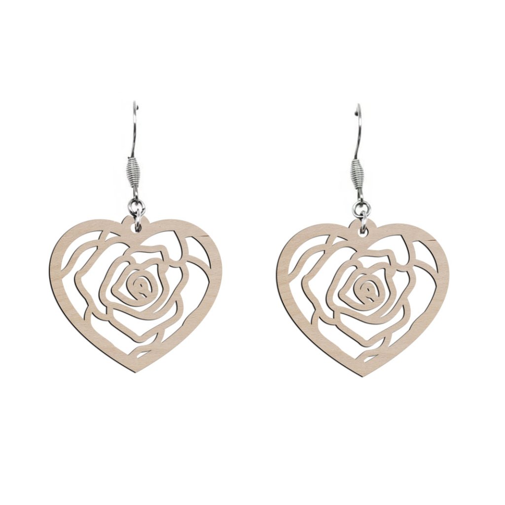 Dřevěné náušnice Jsi nádherná nesou své poselství beze slov – v jemném tvaru srdce a květu růže, který je po staletí symbolem krásy, lásky a ženskosti.