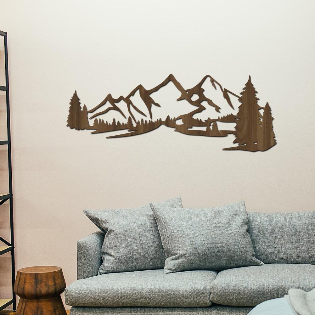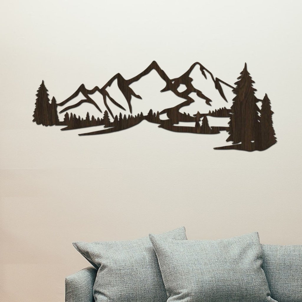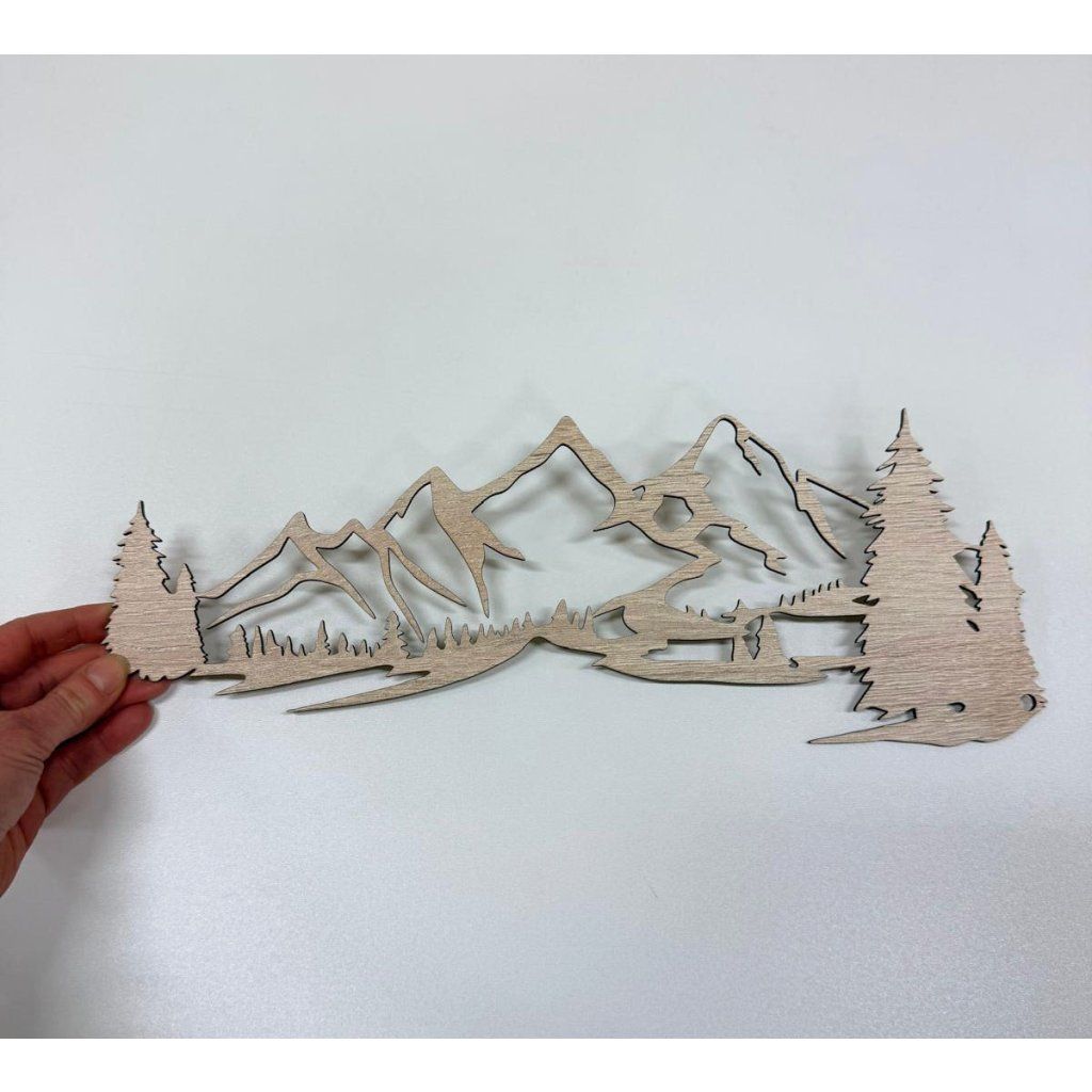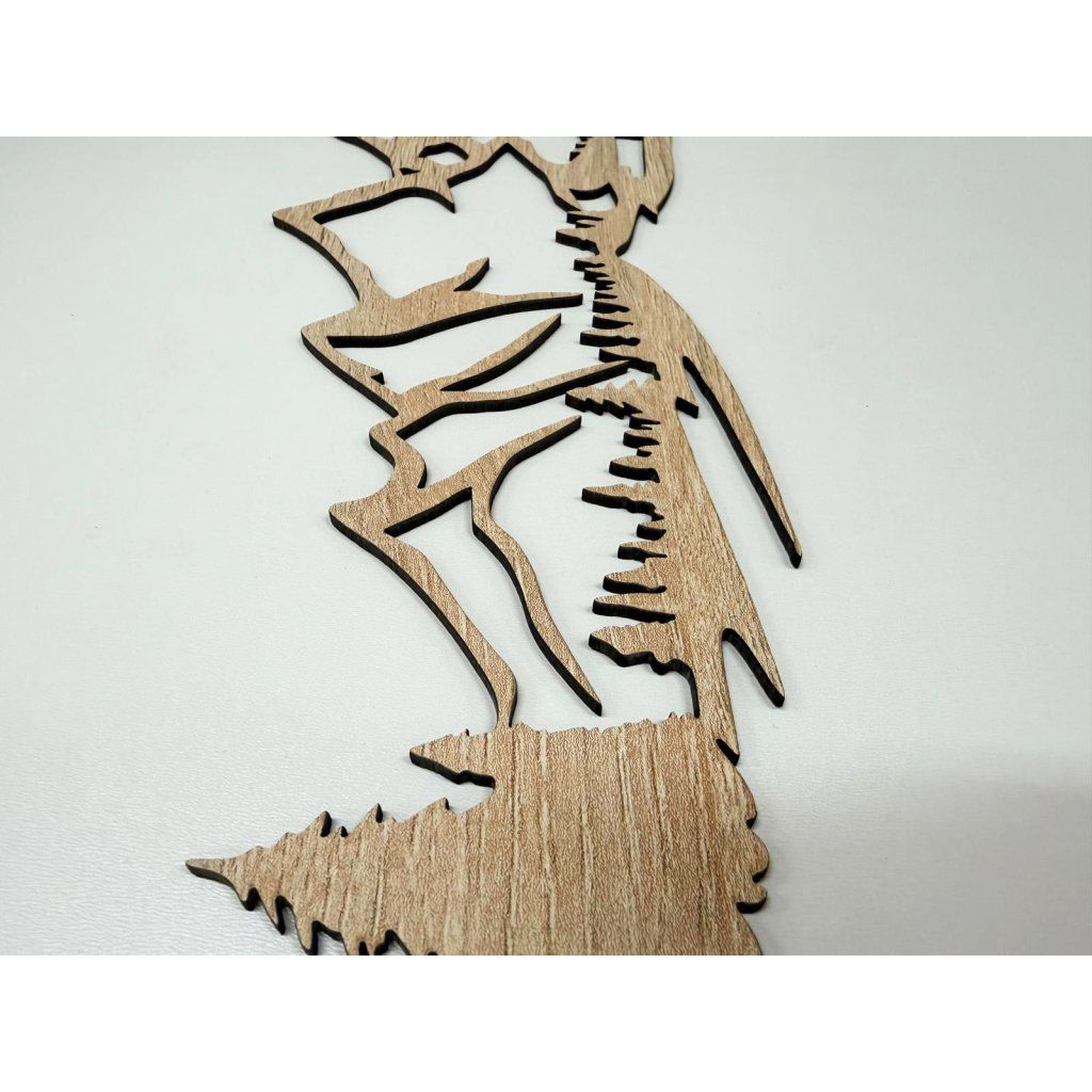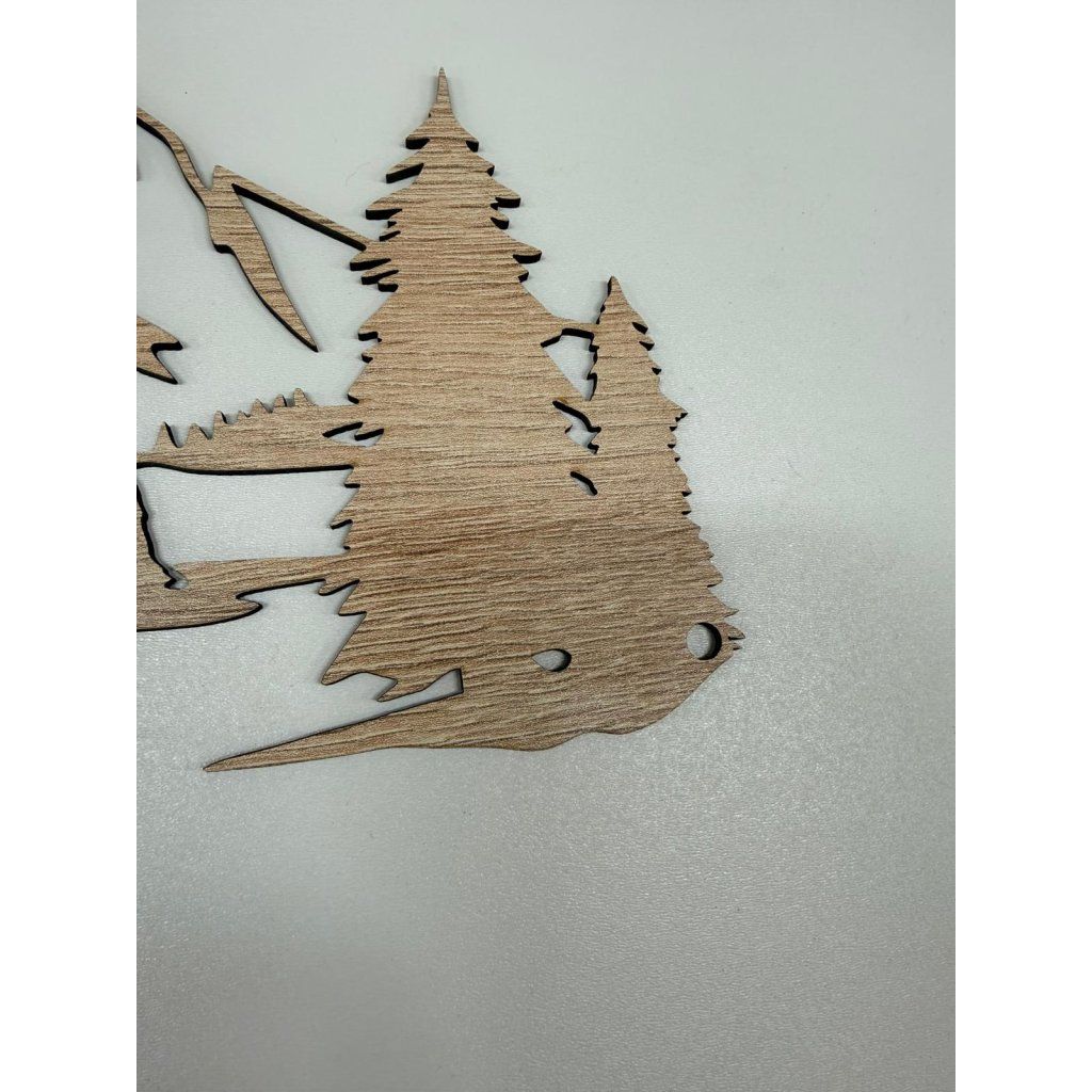 - Detailní motiv hor vyřezaný laserem