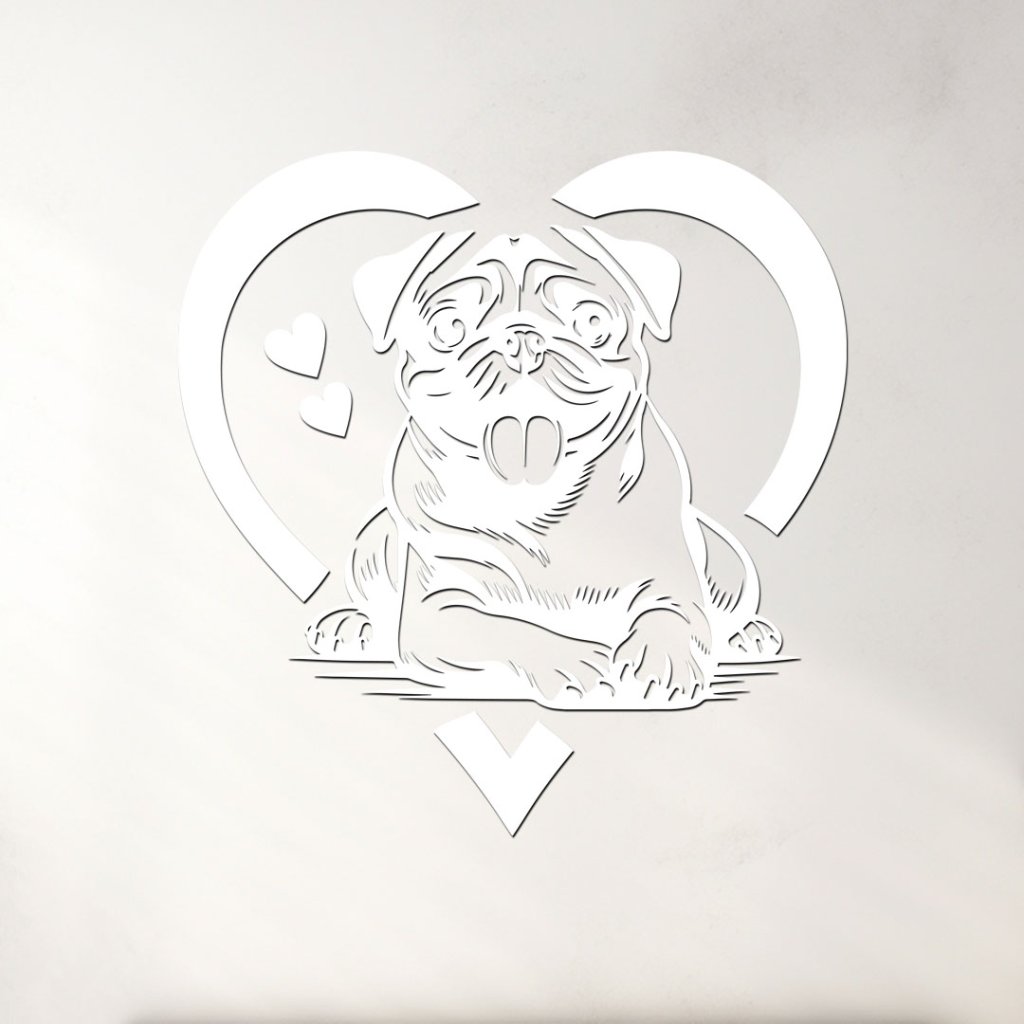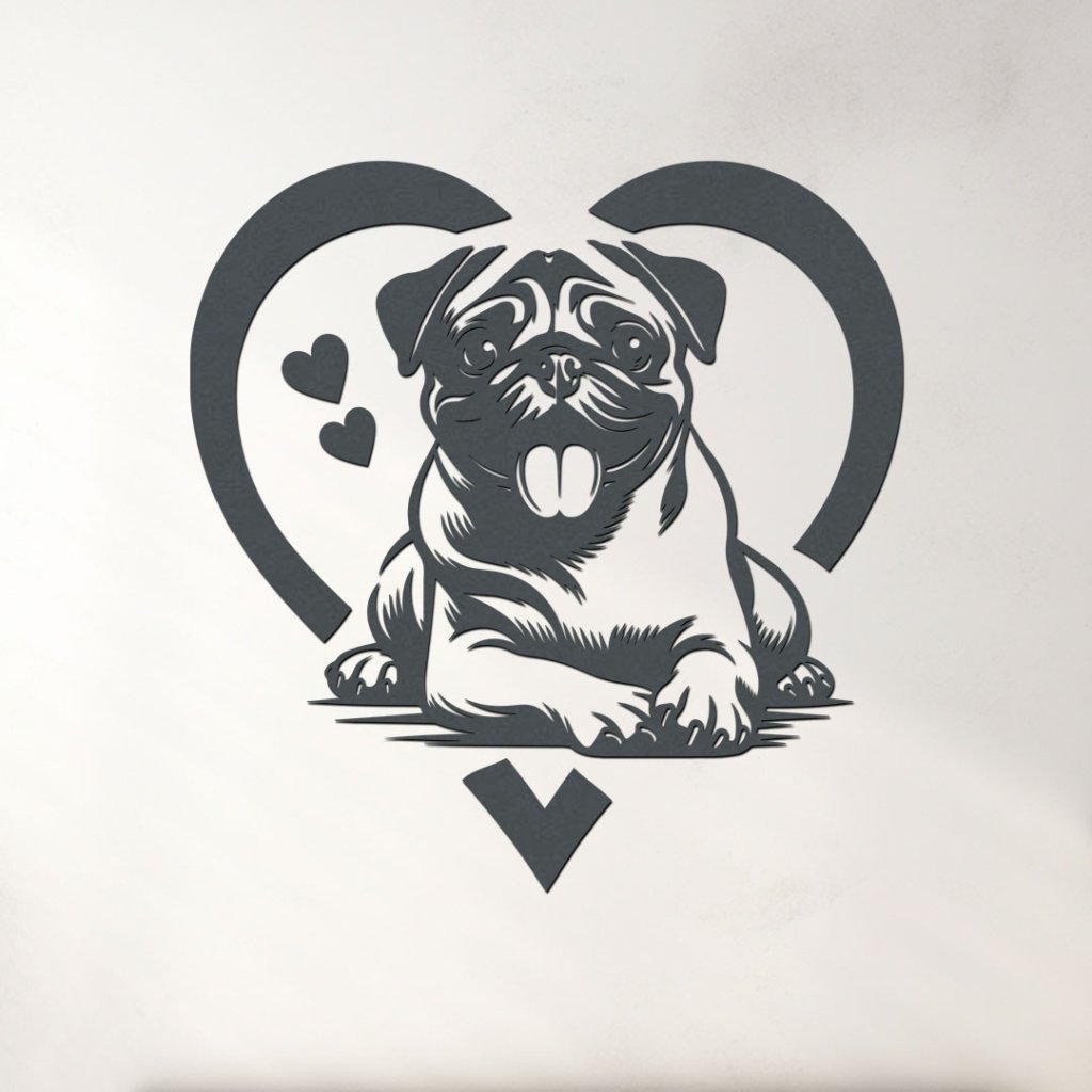 Mops je známý svou přátelskou, veselou a oddanou povahou. Náš obraz zachycuje jeho typický výraz a zasazuje jej do tvaru srdce, který symbolizuje hluboké pouto mezi člověkem a psem. Každý pohled na tuto dekoraci vám připomene radost, kterou váš čtyřnohý přítel vnáší do vašeho života.