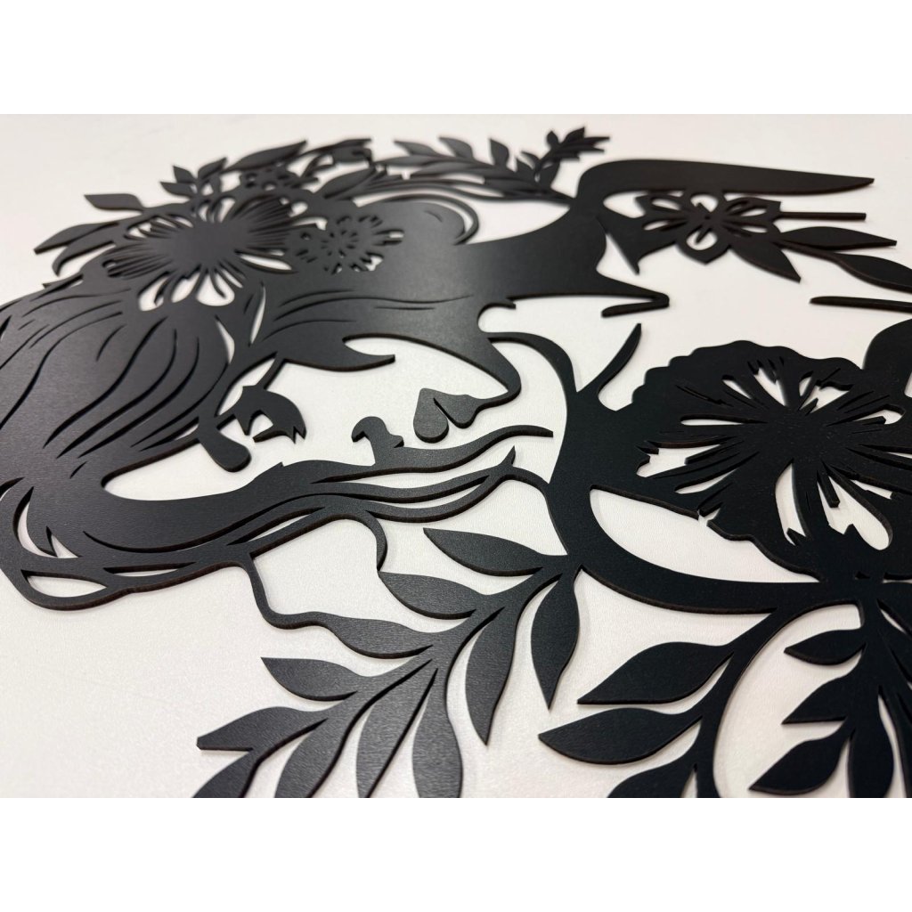 Dřevěný obraz Ženská krása oslavuje jemnost, sílu a přirozenou krásu ženy. Silueta ženy obklopená květinami symbolizuje harmonii, život, citlivost i vnitřní energii, která se rodí z propojení s přírodou a sebou samou.