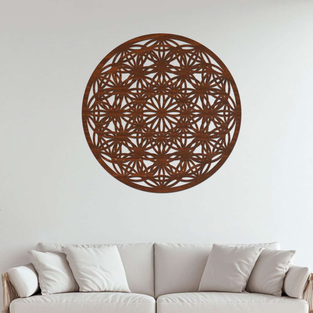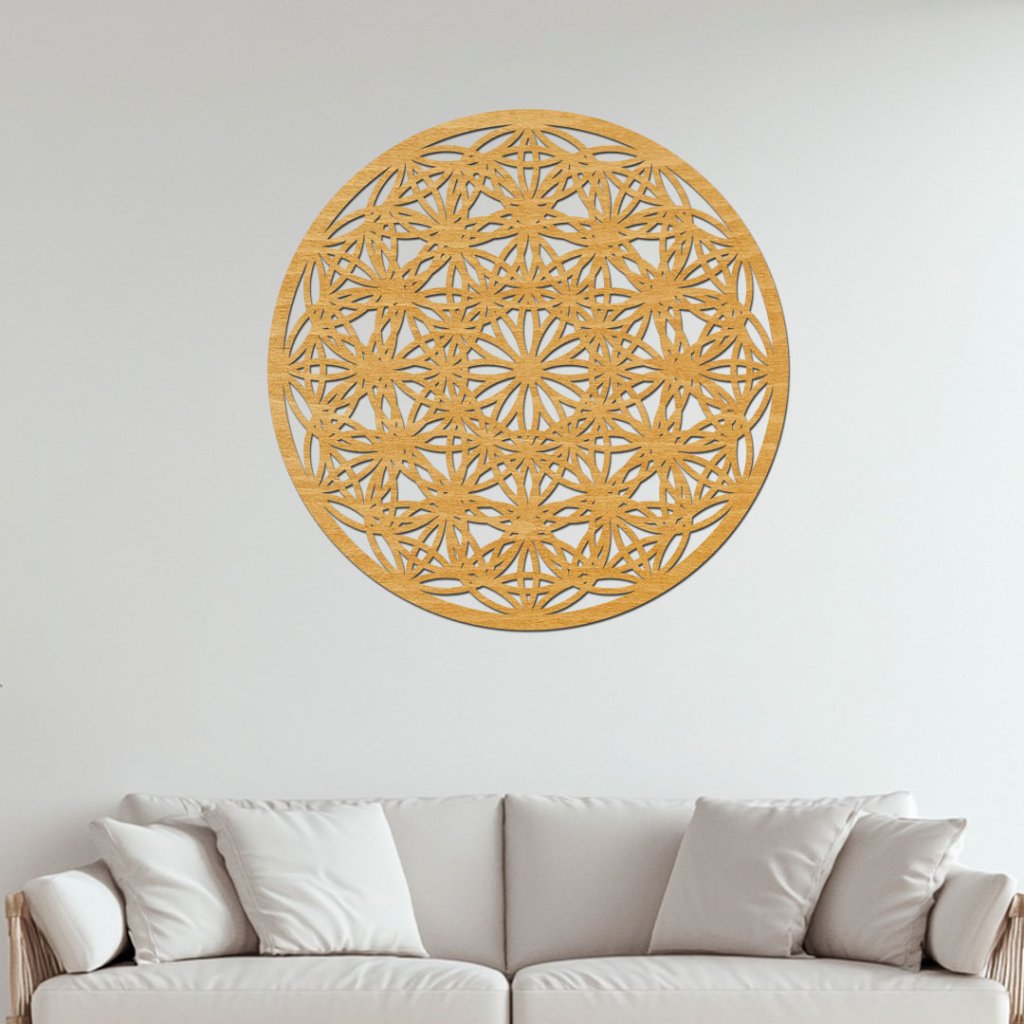 Dřevěný obraz květu života na zeď – Voda