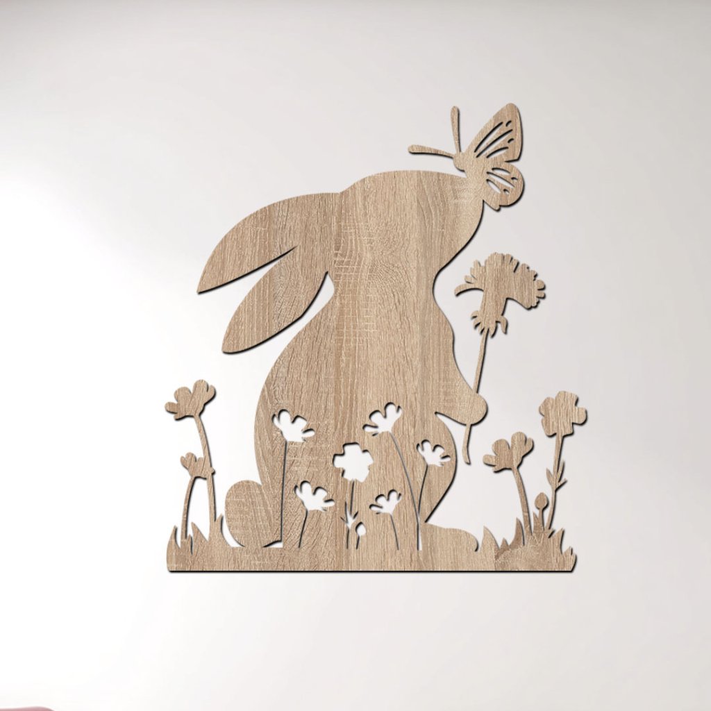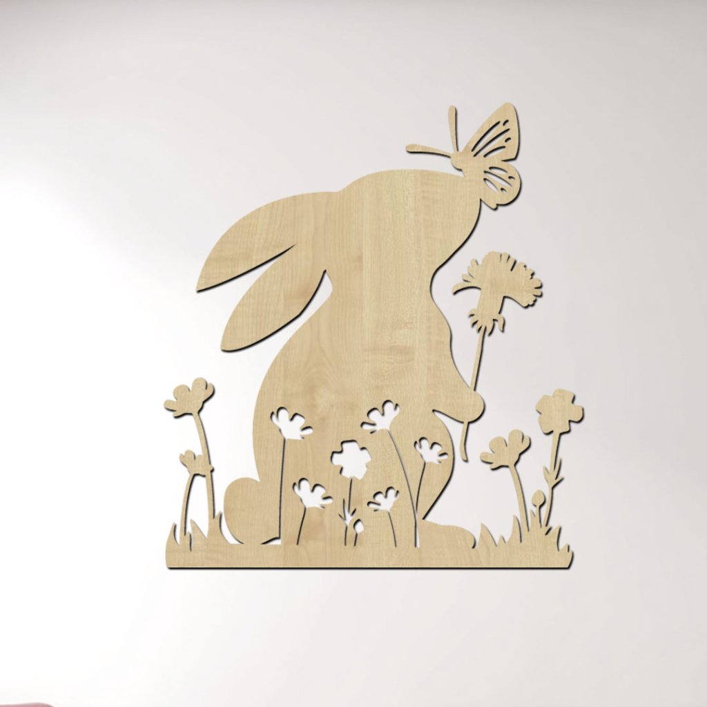 Nástěnná dekorace Velikonoční zajíček s motýlkem přináší do vašeho domova svěžest jara, radost a jemnou eleganci v přírodním provedení.